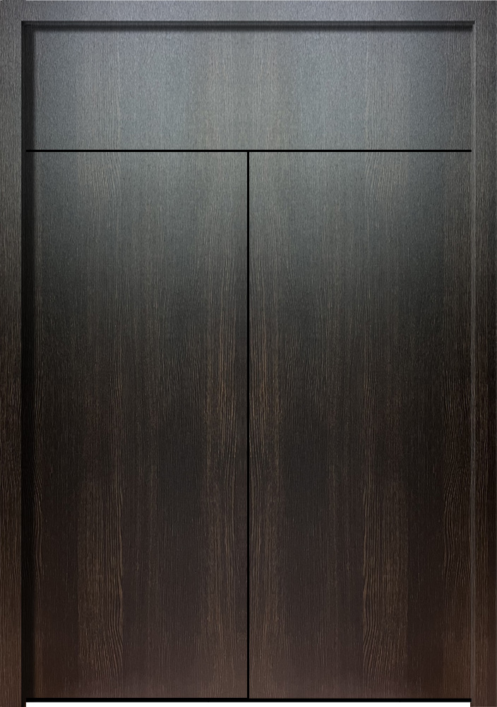 Рама из гнутого профиля с притвором и наличником, дверное полотно толщиной 77мм из листа металла 2,5мм (с внешней стороны) c каркасом из гнутого профиля. 2 вертикальных ребра жесткости и 8 горизонтальных.