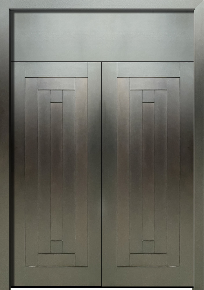 Рама из гнутого профиля с притвором и наличником, дверное полотно цельногнутое толщиной 85мм из листа металла 2мм c каркасом из гнутого профиля. 2 вертикальных ребра жесткости и 8 горизонтальных.